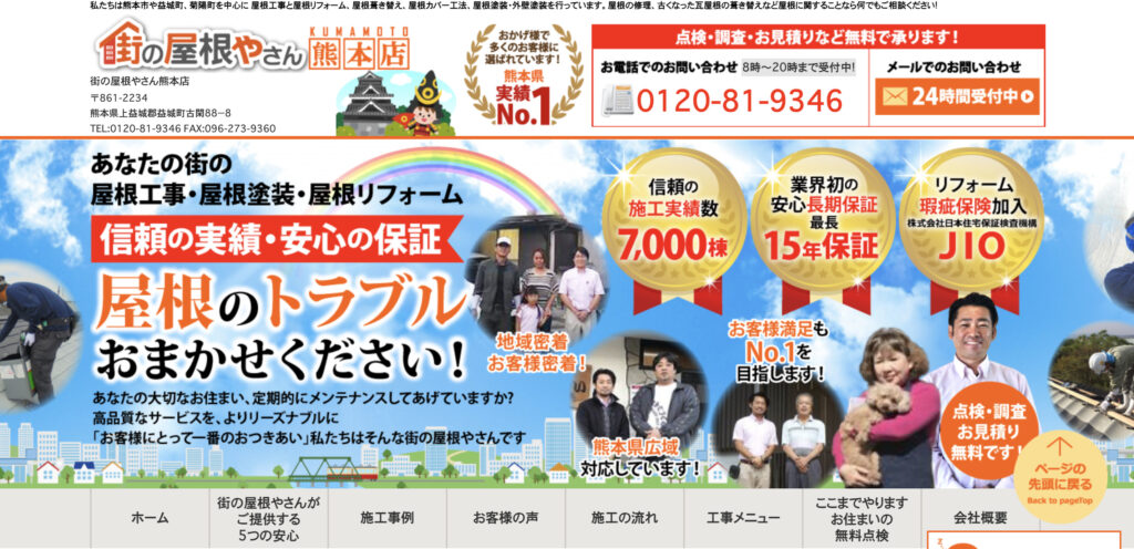 街の屋根やさん熊本店は、屋根工事および防水工事の専門業者として10,000件以上の施工実績を持つ信頼性の高い業者です。